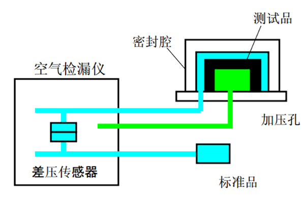 防水測試儀可以勝任對于各個部件的檢測,但是防水檢測儀必須配合工裝夾具進行使用。所謂的夾具就是根據(jù)所檢測零部件的形狀特點特定而成,其主要作用是密封及固定。將檢測部件放入工裝夾具中,形成一個密閉腔,也就是所謂檢測端;防水測試會自帶一個標(biāo)準(zhǔn)腔,叫做標(biāo)準(zhǔn)端;儀器進行檢測時,差壓傳感器根據(jù)檢測端和標(biāo)準(zhǔn)端的差壓值來判斷泄漏量。