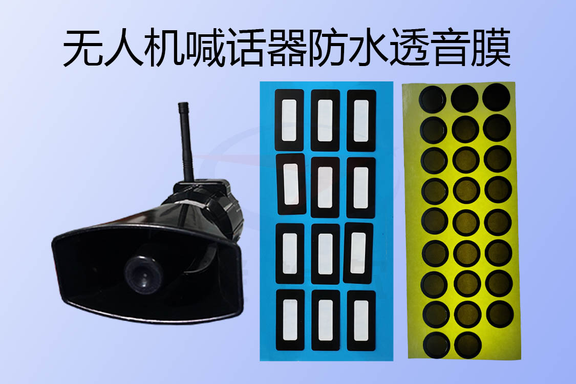 無人機喊話器的防水采用的是全密封結構,這樣就可以很好的實現防水要求,但是因為聲音一般是需要透聲孔才能傳音,所以透聲孔也是需要做防水處理的,還要兼顧聲音傳輸的音質質量,這個透聲孔一般就采用的是戈埃爾無人機揚聲器防水透聲膜來實現的,無人機喊話器防水透聲膜是一種既能防塵防水又能透空氣泄壓,還能透聲通音的高分子微孔薄膜,能夠在很大限度上保持防水的情況下保持無人機喊話器揚聲器聲音高質量輸出,并能在一定程度上實現透氣散熱。