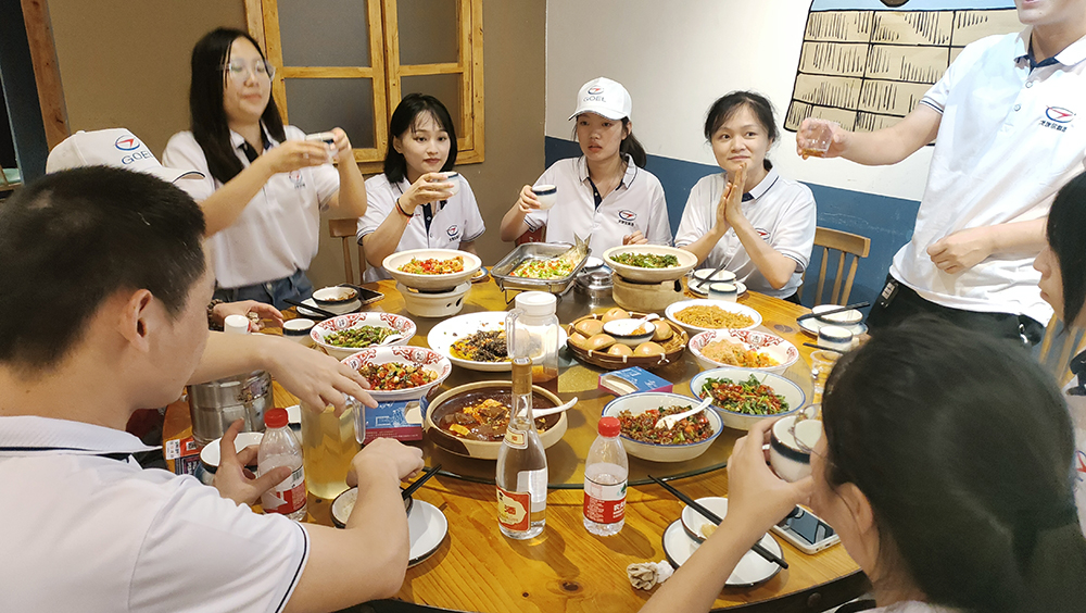在山頂稍作休息后,大家開始結(jié)伴下山,下山的速度總是要格外的快,相比登山時的步履深沉下山的過程要輕松許多。下山之后,公司為大家準備了豐盛的晚餐。奔波一下午,面對豐盛的菜肴和勁爽的啤酒,每個人都瞬間狼吞虎咽。酒過三巡,菜過五味,大家在觥籌交錯,推杯換盞之間盡情宣泄,互訴衷腸,將爬山團建活動氣氛帶向了高潮。