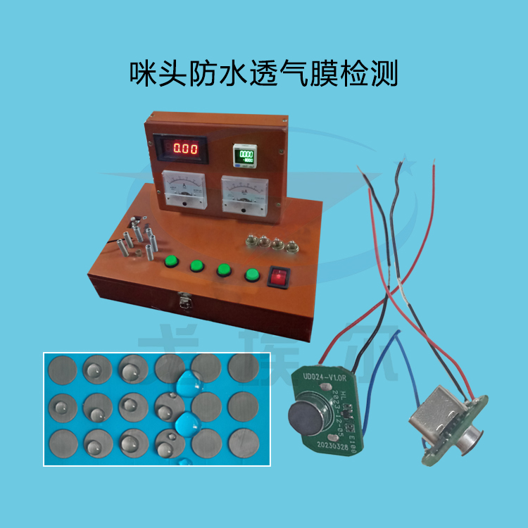 水壓檢測法:通過向咪頭防水透氣膜外部施加水壓,檢測其防水性能。具體而言,在一定的水壓下,咪頭防水透氣膜應(yīng)該能夠保持不漏水,不出現(xiàn)明顯的滲漏現(xiàn)象,同時(shí)能夠有效地承受水壓并保持良好的機(jī)械性能。
